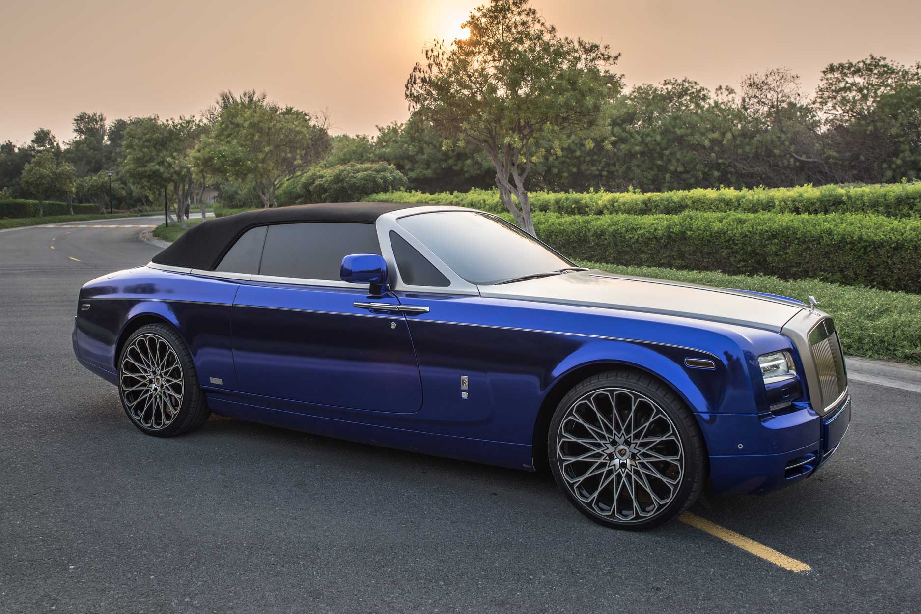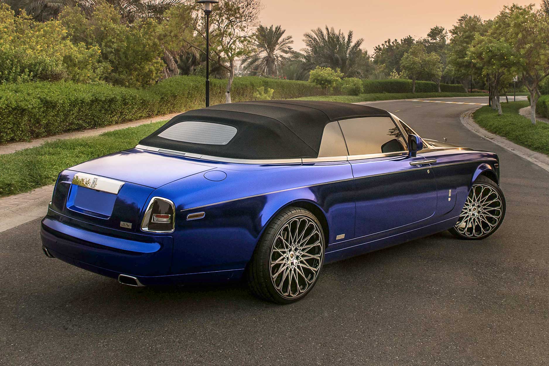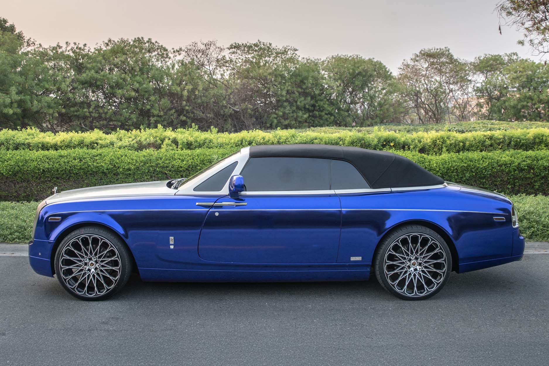 ROLLS ROYCE PHANTOM DROPHEAD VII – MAJESTIC BLUE + MAJESTIC 24″ GLOSS BLACK POLISHED