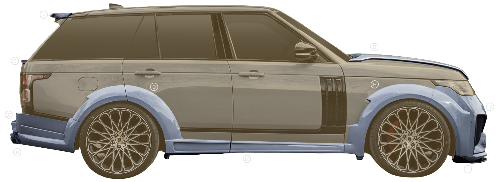 Engineered for the 2018–2021 Range Rover Vogue L405, BISON II Widebody amplifies the platform with expanded arches and uncompromising presence. Rooted in the grounded aggression of the Bison lineage, its widened stance transforms the Vogue into something heavier, bolder, and unmistakably dominant.